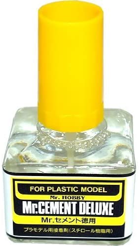 Mr.Cement es el cemento líquido apropiado para usar cuando se busca unir piezas de plástico. Es la mejor opción para pegar piezas de kits de modelos de plástico de estireno. Cada botella contiene un práctico cepillo de aplicación dentro de la tapa de la botella. MC124 y MC127 contienen el mismo cemento líquido, pero MC124 contiene 25 ml y MC127 contiene 40 ml.