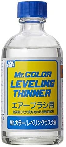 Mr. LEVELING THINNER es excelente para aplicaciones con aerógrafo. Mezclar Mr. LEVELING THINNER con Mr. COLOR en una proporción de 1: 1 o 1: 2 mejora la nivelación y aumenta el brillo. Cuando el secado es lento debido a una corriente de aire insuficiente durante los meses de invierno, es mejor mezclar Mr. COLOR THINNER con Mr. LEVELING THINNER. La mezcla estará seca al tacto después de un período de aproximadamente 10 minutos. Funciona perfectamente también con lacas acrylicas TAMIYA