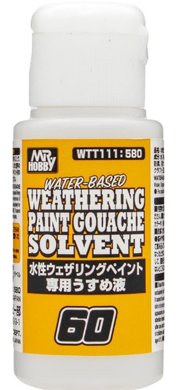 AL DILUIR LA PINTURA GOUACHE A BASE DE AGUA CON ESTE DISOLVENTE, SE PUEDEN CREAR DE MANERA REALISTA DIVERSOS EFECTOS DE TINCIÓN, COMO REVESTIMIENTO DE PANELES Y MEZCLA, Y LA ELIMINACIÓN DEL EXCESO DE PINTURA SE PUEDE HACER FÁCILMENTE. ESTE DISOLVENTE ES EXCLUSIVAMENTE PARA PINTURA GOUACHE A BASE DE AGUA. NO SE PUEDE UTILIZAR PARA DILUIR EL COLOR MR. WEATHERING U OTRAS PINTURAS.