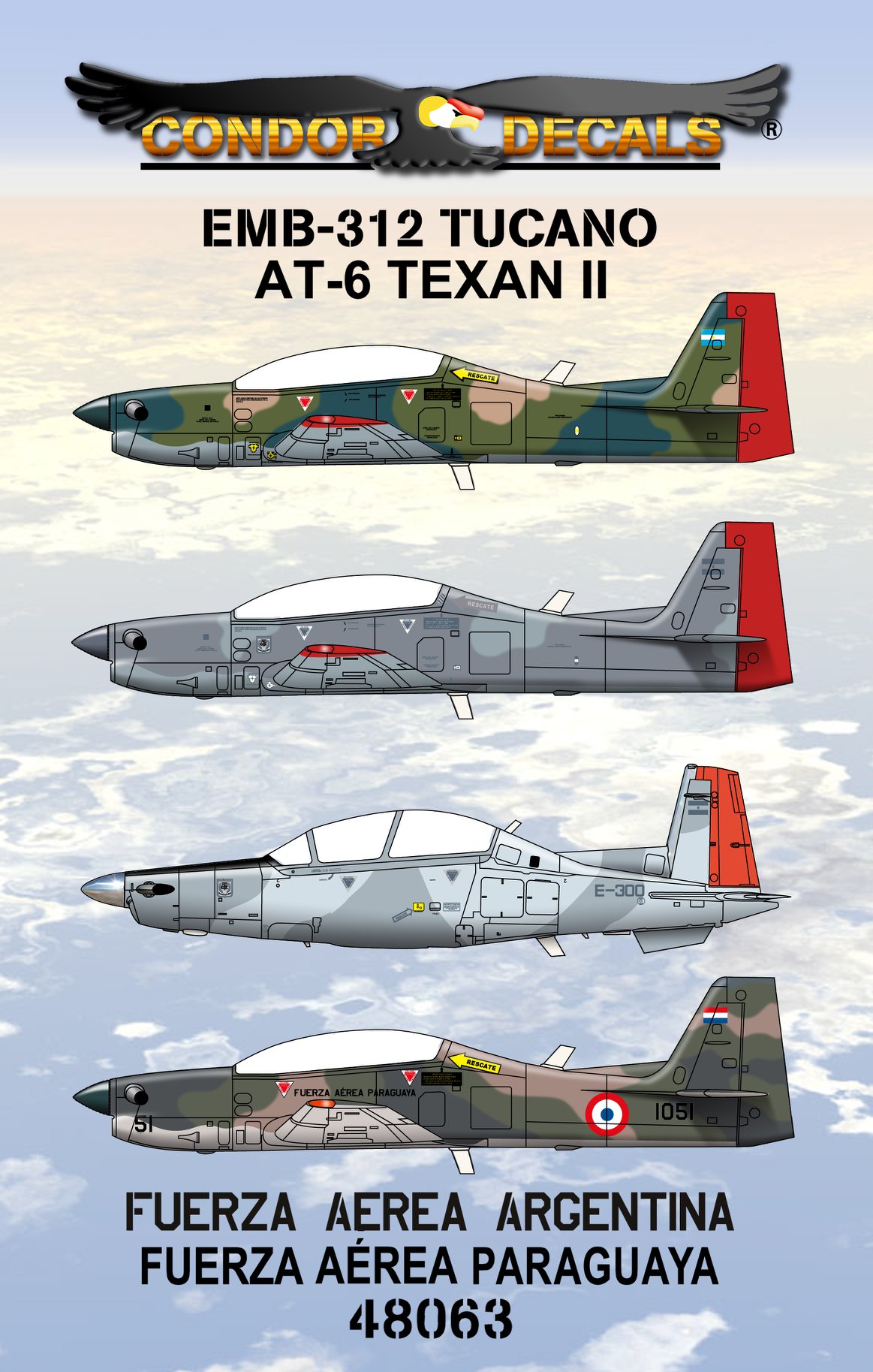 CONDOR DECALS 48063 – EMB-312 TUCANO / AT-6 TEXAN II EN LA FUERZA AÉREA ARGENTINA Y EN LA FUERZA AÉREA PARAGUAYA.
