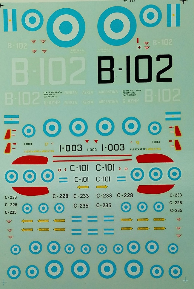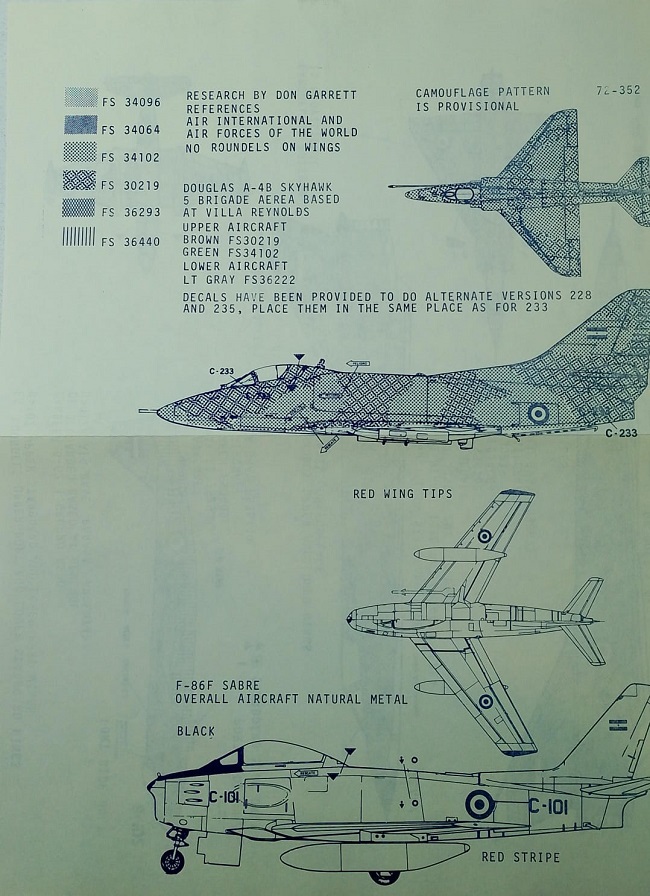 CALCAS ESCALA 1/72 "ARGENTINA AIR FORCE - A-4B, MIRAGE, CANBERRA & F86"