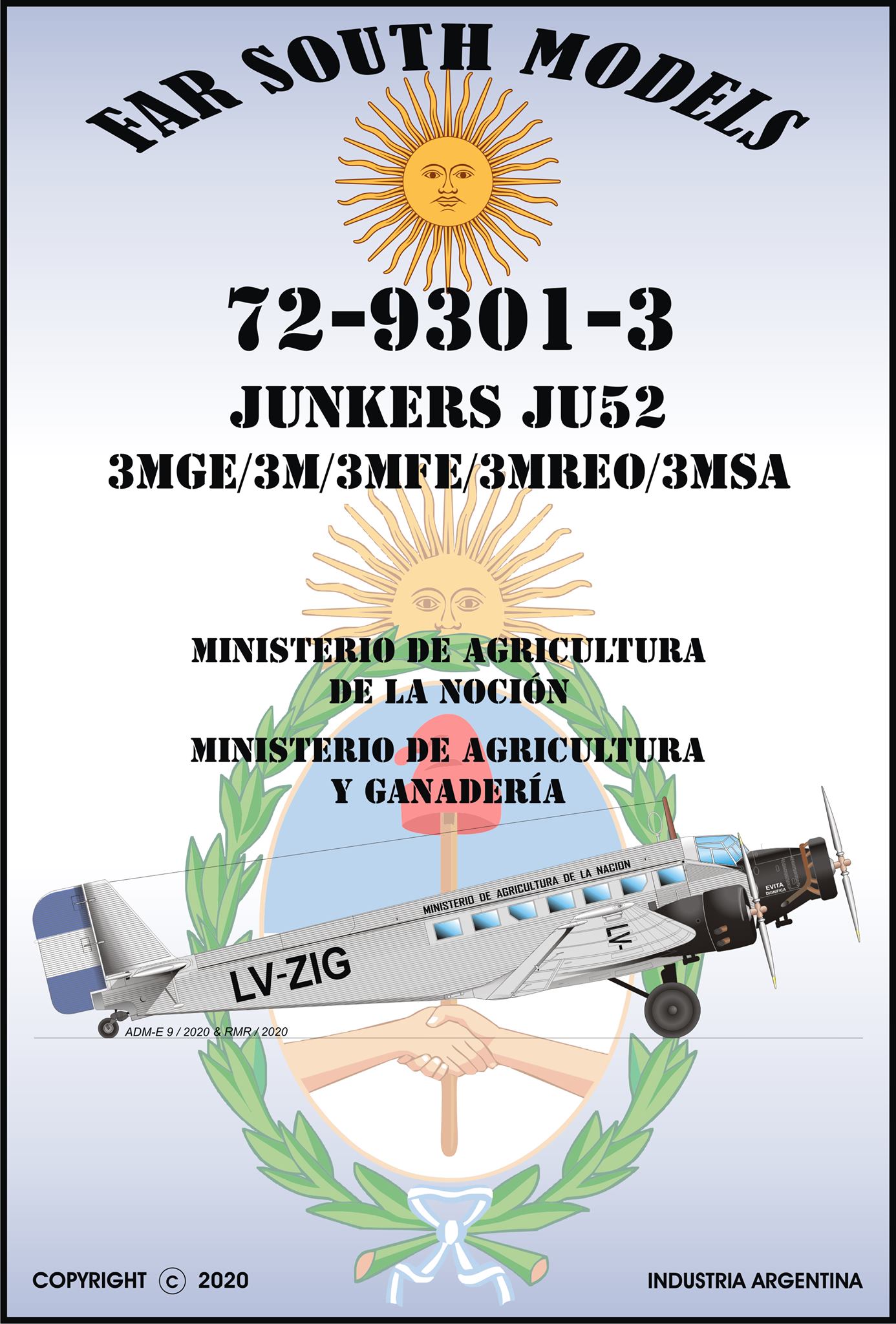 CALCAS PARA JUNKERS JU52 DEL MINISTERIO DE AGRICULTURA DE LA NACIÓN Y DEL MINISTERIO DE AGRICULTURA Y GANADERÍA