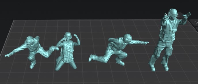 Set de 4 figuras de tripulantes de cubierta de portaaviones genéricas en distintas poses, para dioramas.