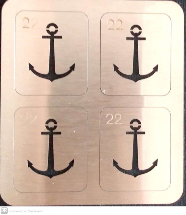 JUEGO DE 4 PLANTILLAS DE ANCLAS PARA AVIACIÓN NAVAL ARGENTINA DE 22mm.