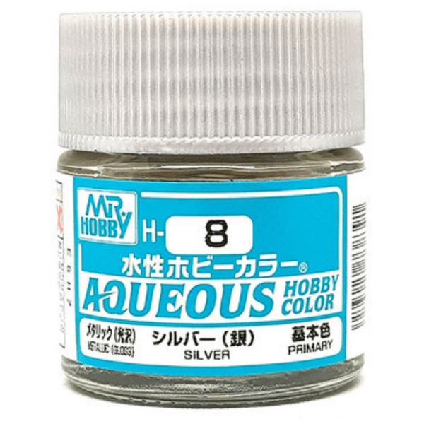 Aqueous Hobby Colour es una pintura muy segura que tiene un alto grado de facilidad de uso. La pintura Aqueous Hobby Color se puede diluir con agua si se desea, mientras que los pinceles se pueden limpiar y lavar con agua. Asegurándose de que esto sea antes de que la pintura esté seca. El solvente contenido en la pintura Aqueous Hobby Color es muy suave. Proporciona una textura brillante y muy buenas cualidades de nivelación (es decir, la suavidad de la película recubierta de pintura), lo que da como resultado un muy buen nivel de acabado pintado. En particular, el nivel de brillo alcanzado con el uso de pinturas brillantes Aqueous Hobby Color es excelente. Los niveles de brillo obtenidos con la capa brillante Aqueous Hobby Colors se pueden ajustar usando H-40 Flat Base; mezcle aproximadamente un 5% de H-40 Flat Base para convertir los colores brillantes en un acabado mate, o del 5 al 10% para un acabado semibrillante. El porcentaje de base plana utilizado se puede ajustar para variar la cantidad de nivel de brillo obtenido. No es necesario diluir Aqueous Hobby Color para pintar con brocha como regla básica, pero si usa un aerógrafo para rociar Aqueous Hobby Color, diluya la pintura con 100 a 150% Mr.Aqueous Hobby Color Thinner (T-110 0r T-111 ). Al pintar con brocha, generalmente se recomiendan de 1 a 2 capas y de 2 a 3 capas cuando se usa un aerógrafo. Si pinta un color claro sobre una superficie de base más oscura, es posible que se requieran más capas de pintura.