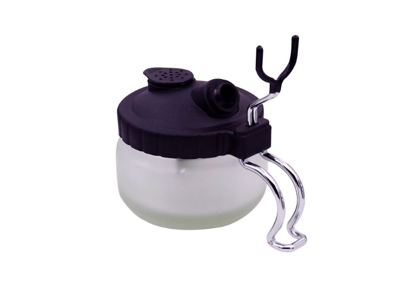 FRASCO PARA LIMPEZA DE AERÓGRAFO CON SOPORTE Y FILTRO.