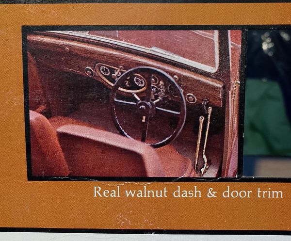- Panel de instrumentos y molduras de puertas originales de Walmut. Interior detallado con volante a la derecha.