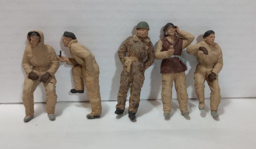 5 FIGURAS ARMADAS DE TANQUISTAS BRITÁNICOS DE LA IIGM. ES LO QUE SE PUEDE APRECIAR EN LAS FOTOS. FALTAN TERMINAR PINTURA.