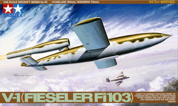 Impulsada por un motor de pulsorreactor, la bomba voladora no tripulada V-1, desarrollada por Alemania durante la Segunda Guerra Mundial, alcanzaba velocidades de 640 km/h, volaba cierta distancia y luego se estrellaba y explotaba. Este kit reproduce la forma simple de esta arma e incluye piezas para simular un carro de transporte