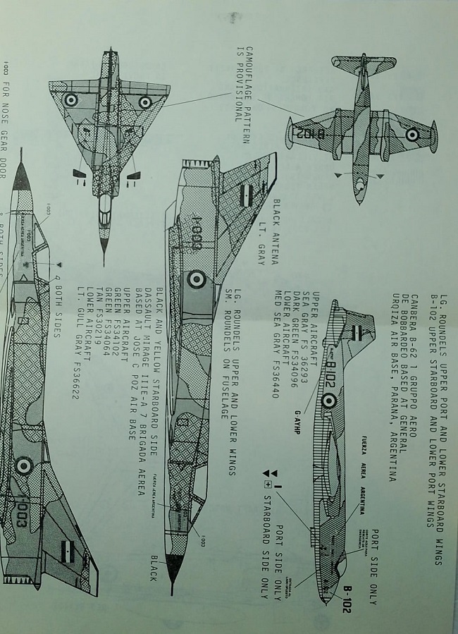 CALCAS ESCALA 1/72 "ARGENTINA AIR FORCE - A-4B, MIRAGE, CANBERRA & F86"