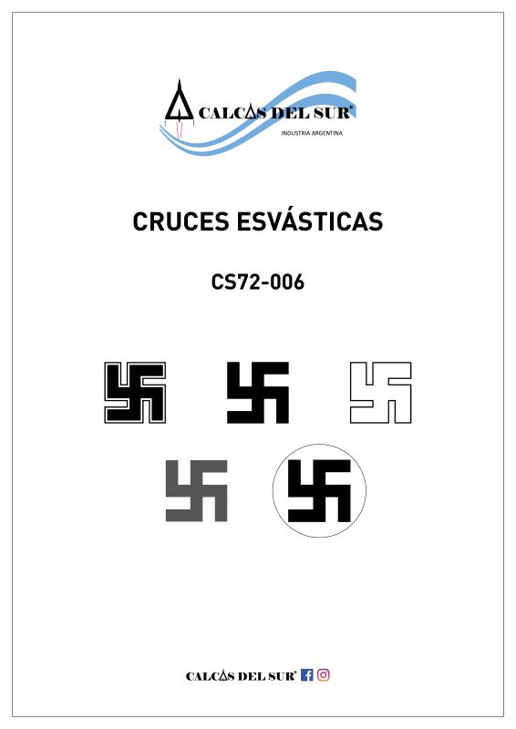 Ocho diseños diferentes de cruces, en cinco tamaños. Cruz negra con bordes negros y blancos, sólo con borde blanco, y sin borde; cruz blanca; cruz gris; cruz sólo borde blanco o negro, sin relleno; cruz negra sobre círculo blanco.