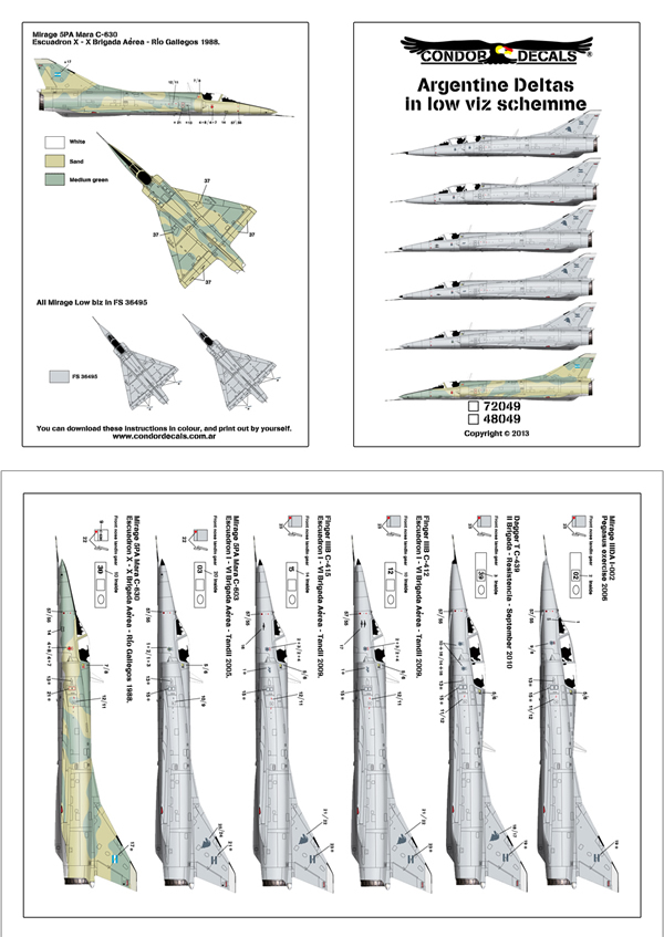 CONDOR DECALS 72049 – DELTAS ARGENTINOS EN ESQUEMAS DE BAJA VISIBILIDAD: IIIDA, DAGGER BIPLAZA, FINGER IIIB Y MARA.