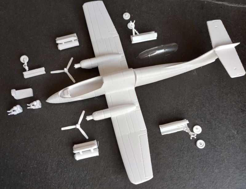 200x190mm - 17 PIEZAS - NO INCLUYE CALCAS - TREN DE ATERRIZAJE CON SISTEMA MUY SIMPLE Y PRÁCTICO PARA ENSAMBLAR - INCLUYE DOS PILOTOS - CABINA EN VACUFORME - COHETERAS.