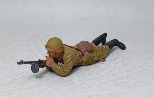 Infante soviético con subfusil PPSH-41 cuerpo a tierra