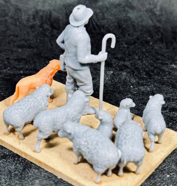Pastor, perro y 8 ovejas