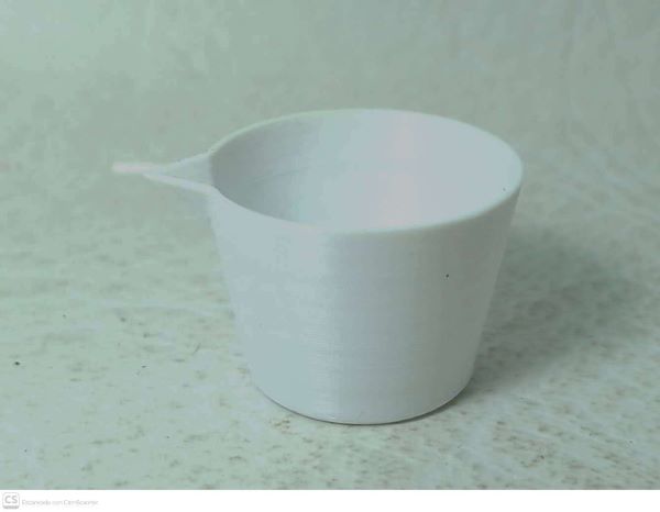 Copa con pico vertedor para preparación de pinturas.