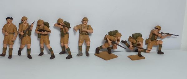 - 8 soldados británicos en actitud de combate. Pintados, aptos para mejorar, despintar, repintar, etc.